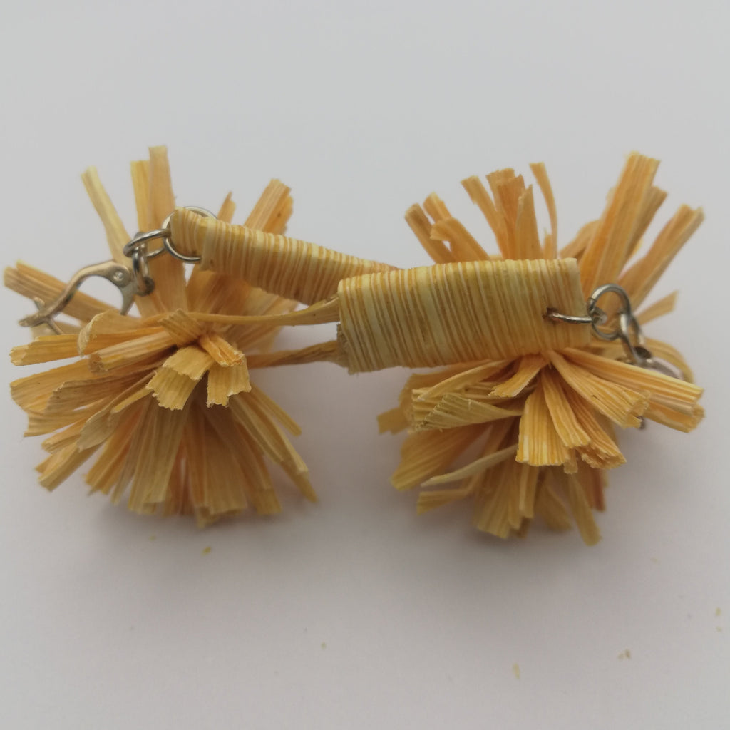 Boucles d’oreilles “Mayara” — pompons feuilles de maïs stabilisées