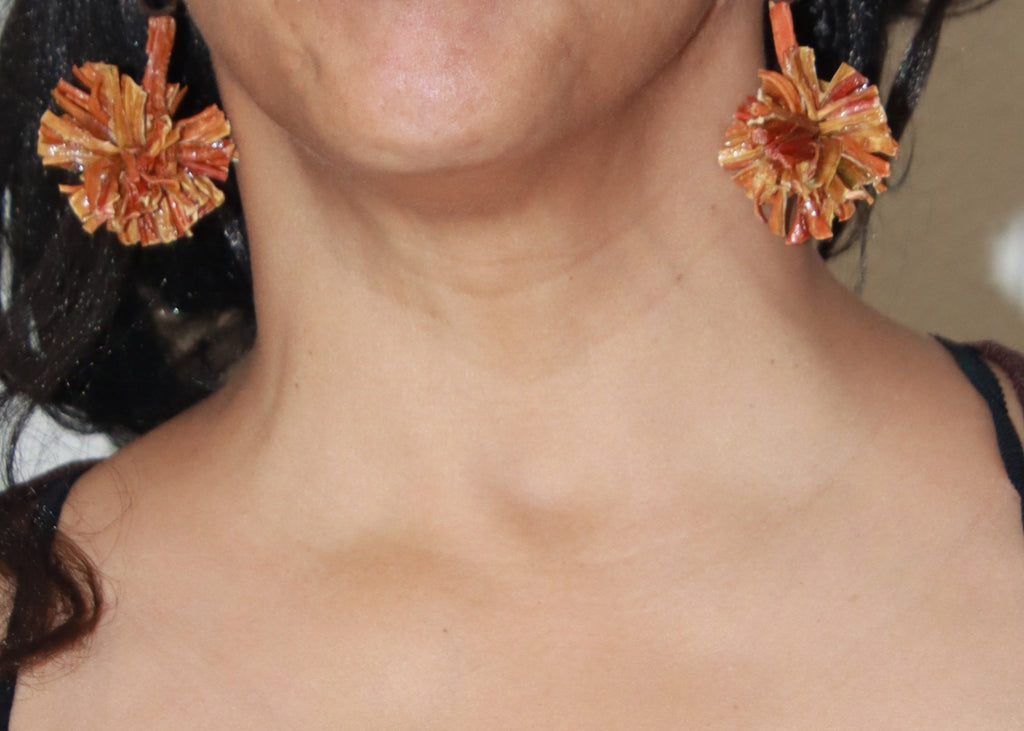 Boucle d'oreille AUREA pompon, Carotte Arc en Ciel stabilisé