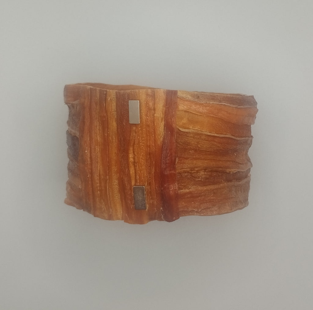 Découvrez l'originalité au naturel avec notre Bracelet "terre de feu. Une pièce unique, entièrement façonnée à la main à partir de lamelles de carottes oranges et rouges, pour un effet visuel texturé et chaleureux. Tel un lever de soleil à votre poignet, ses nuances naturelles apportent une touche de vitalité et d'authenticité à votre style. Innovant et surprenant, ce bracelet est ingénieusement doté d'un système aimanté pour une fermeture discrète et un maintien parfait. Portez l'audace et la singularité, et laissez la nature habiller votre bras avec élégance et originalité."