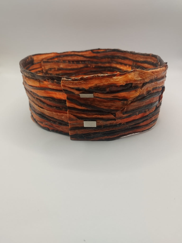 Ce ras-de-cou magnétique en carotte bi-couleur épouse le cou comme une seconde peau. Les reflets prune et orange s’entrelacent dans une énergie vibrante, sensuelle et naturelle.